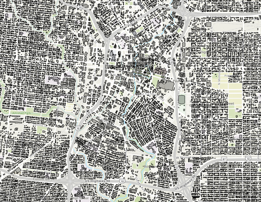 For San Antonio, Texas, the system has access to approximately 450,000 residential and commercial building footprints, enabling city-wide property analysis.